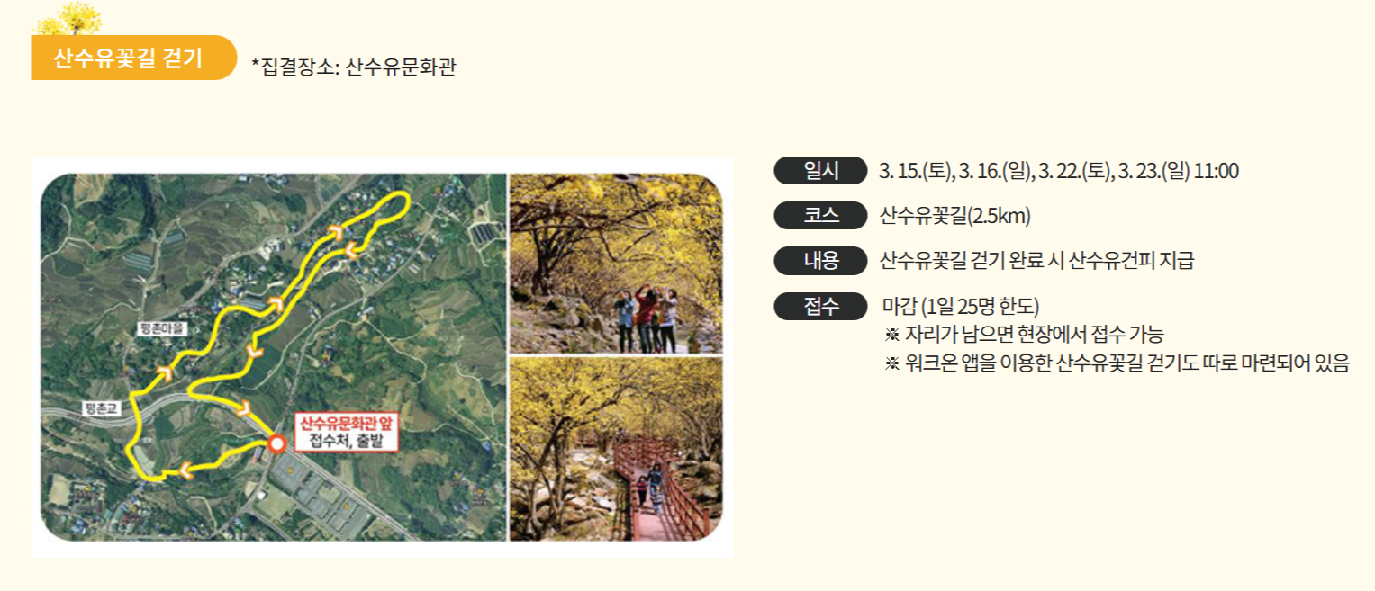 1️⃣ 산수유 꽃길 걷기