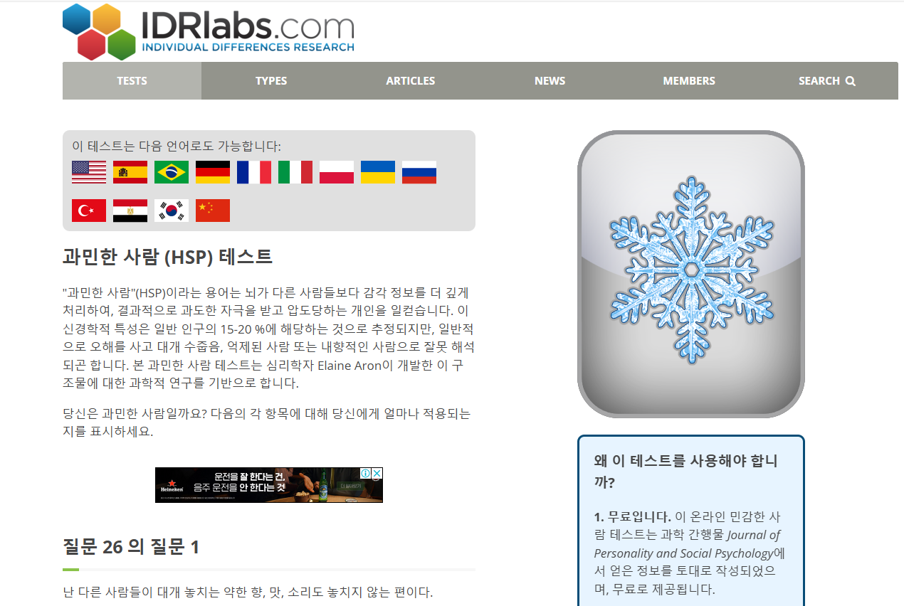 HSP 테스트는 자신의 민감도를 확인하고, 자신이 HSP인지 여부를 판단하는 데 도움을 줍니다. 많은 사람들이 자신의 예민함 때문에 고통을 겪고 있지만, 이를 이해하고 받아들이는 과정이 필요합니다. HSP 테스트를 통해 자신이 어떤 성향을 가지고 있는지 알게 되면, 더 나은 대처 방법을 찾을 수 있습니다.